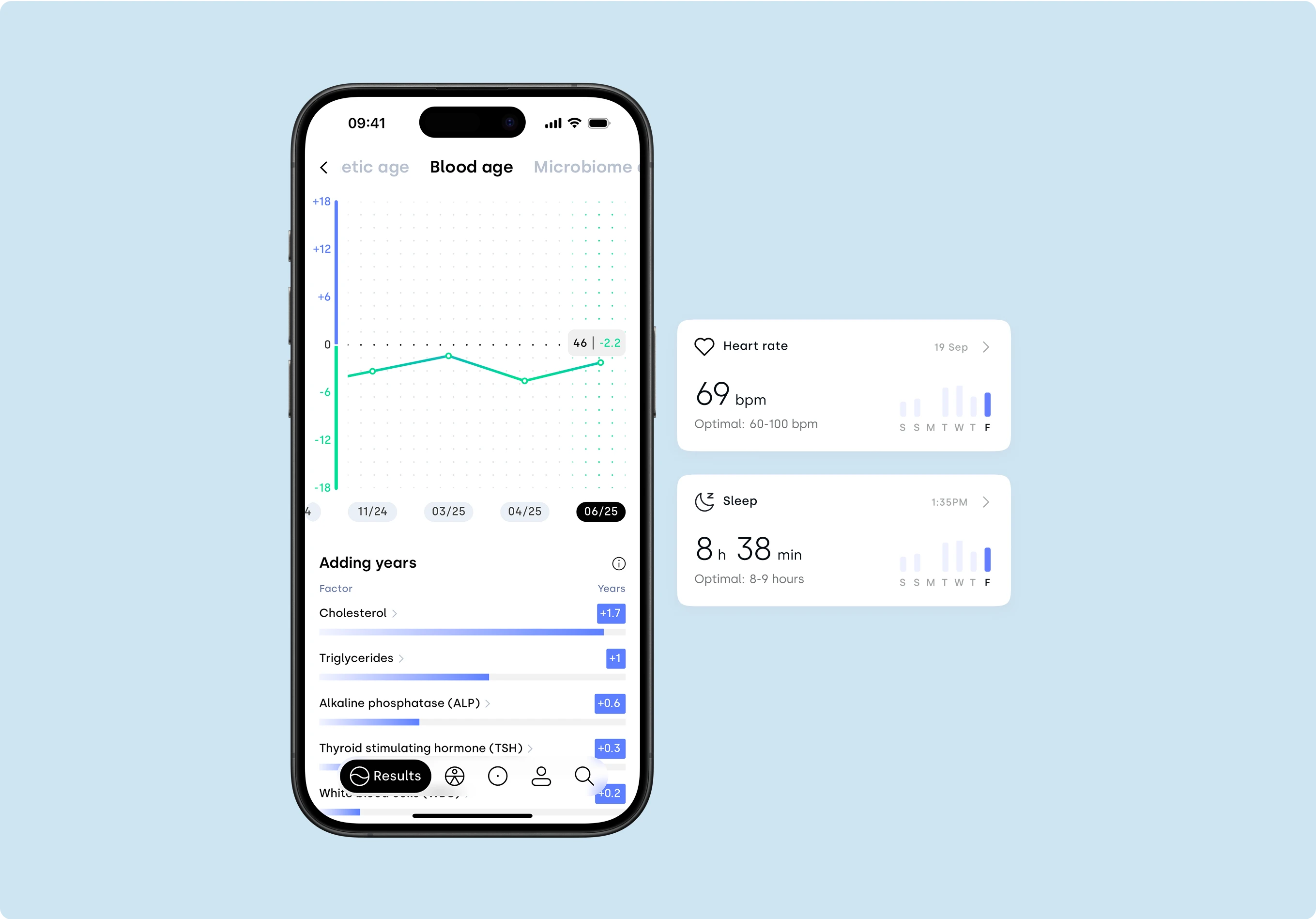We run targeted diagnostic panels and consolidate all results into your personal blueprint (hormones, metabolism, inflammation, micronutrients, key risk markers and much more). This becomes your baseline for biological age, informed decision-making and long-term tracking.
